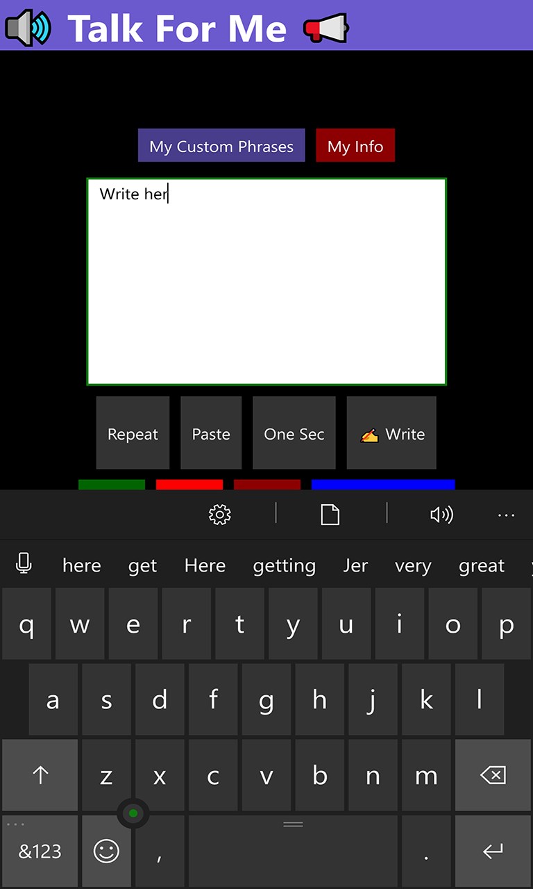 Talk for Me is an application designed to give those without a voice a voice.