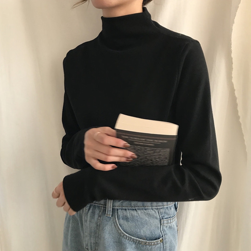 Early Autumn New Korean Slim Thin Long Sleeved T Shirt Female Students Black Turtleneck Shirt Shirt Shopee Indonesia