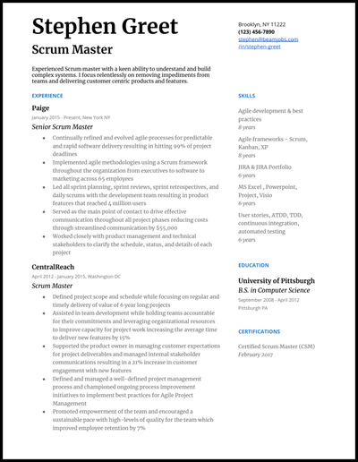 Expert Trainers High Exam Pass Rate Exams Included. Eight years scrum experience. To write great resume for scrum master job your resume must include.